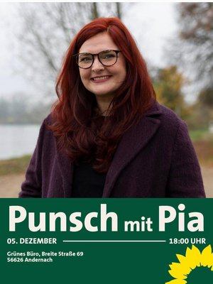 Zeit für guten Austausch und einen heißen Punsch. Pia Schellhammer ist am Freitag, 5.12. um 18 Uhr im Büro in Andernach zu Besuch beim Kreisverband. Herzliche Einladung an alle! Meldet euch an über info@gruene-myk.de ☺️